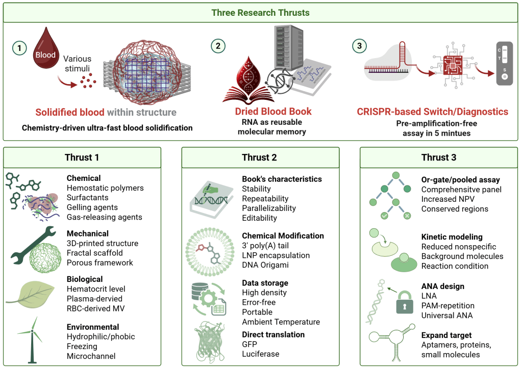 My research goal is to combine each unique and diverse field of study such as biology, chemistry, mechanics, materials, and computational research and create a translational diagnostic platform for rapid and precise detection of disease markers including cancer and infectious diseases.
